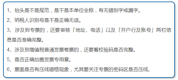 重點(diǎn)審核,主要是核查品名、數(shù)量、金額、稅率、開(kāi)票方式、備注欄、清單開(kāi)票等相關(guān)信息。